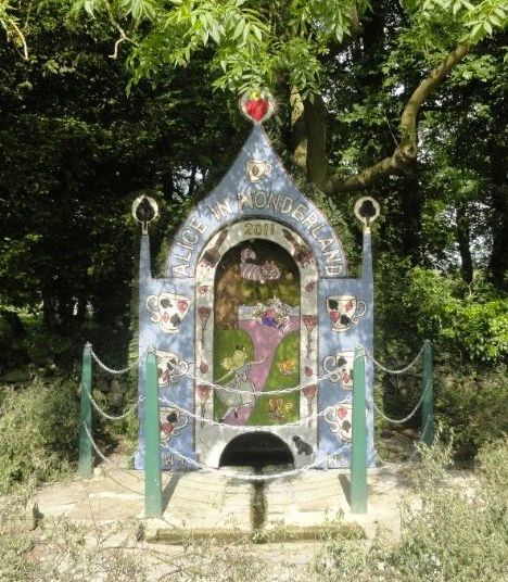 photo by Sandra Dodd, of a well dressing in the village of Tissington