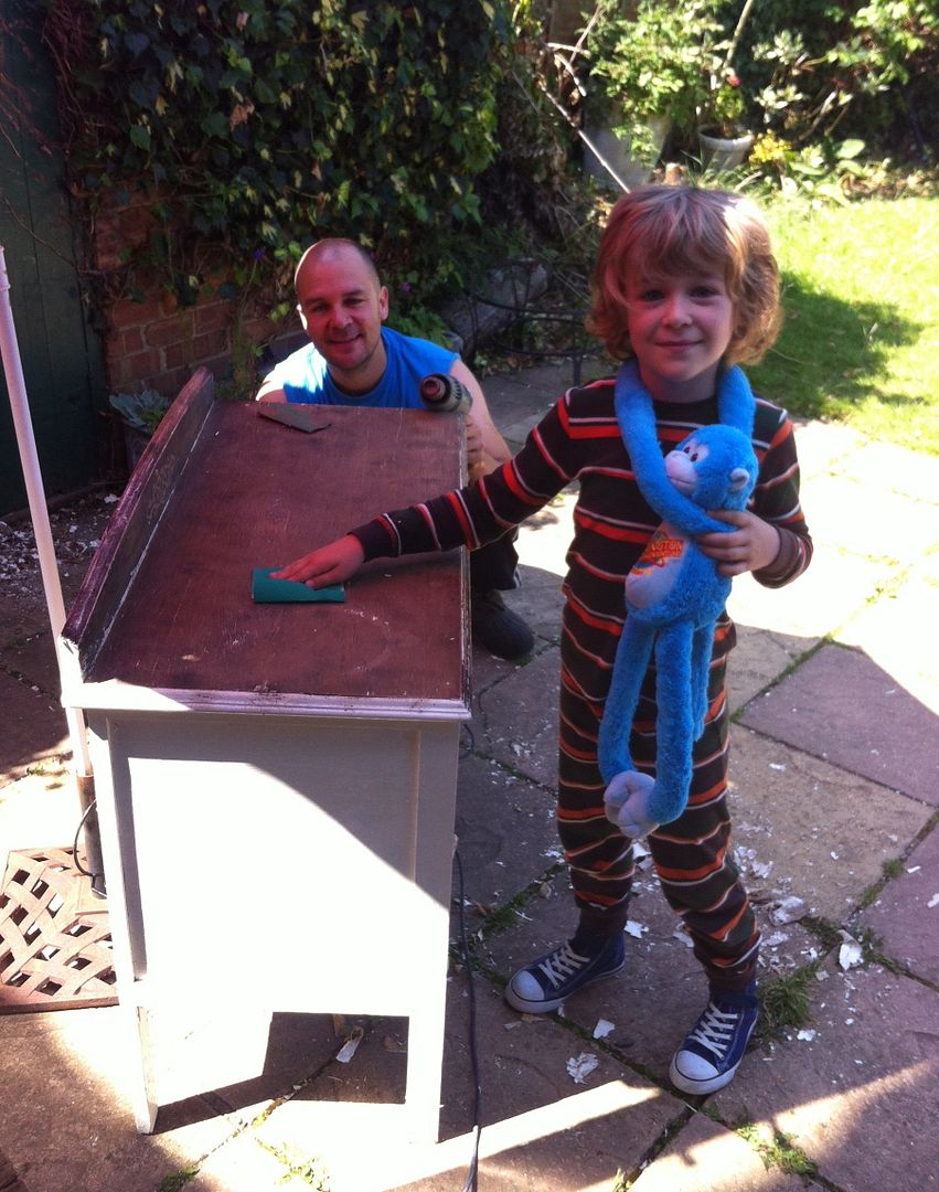 Janine, who took the photo above, shared this post on her facebook page, with these comments:____________A photo of my cute monkey, with his cute monkey, taken last summer and put in this lovely place.That piece of furniture is looking good and in full use in my bedroom now.